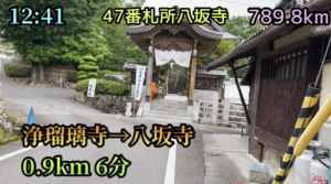 46番札所浄瑠璃寺から47番札所八坂寺までの距離は0.9kmです。