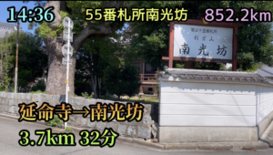 54番札所延命寺から55番札所南光坊までの距離は3.4kmです。