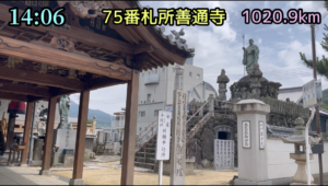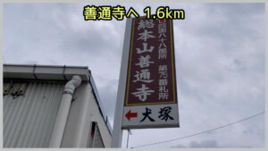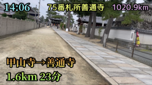 74番札所甲山寺から75番札所善通寺への距離は、1.6kmです。