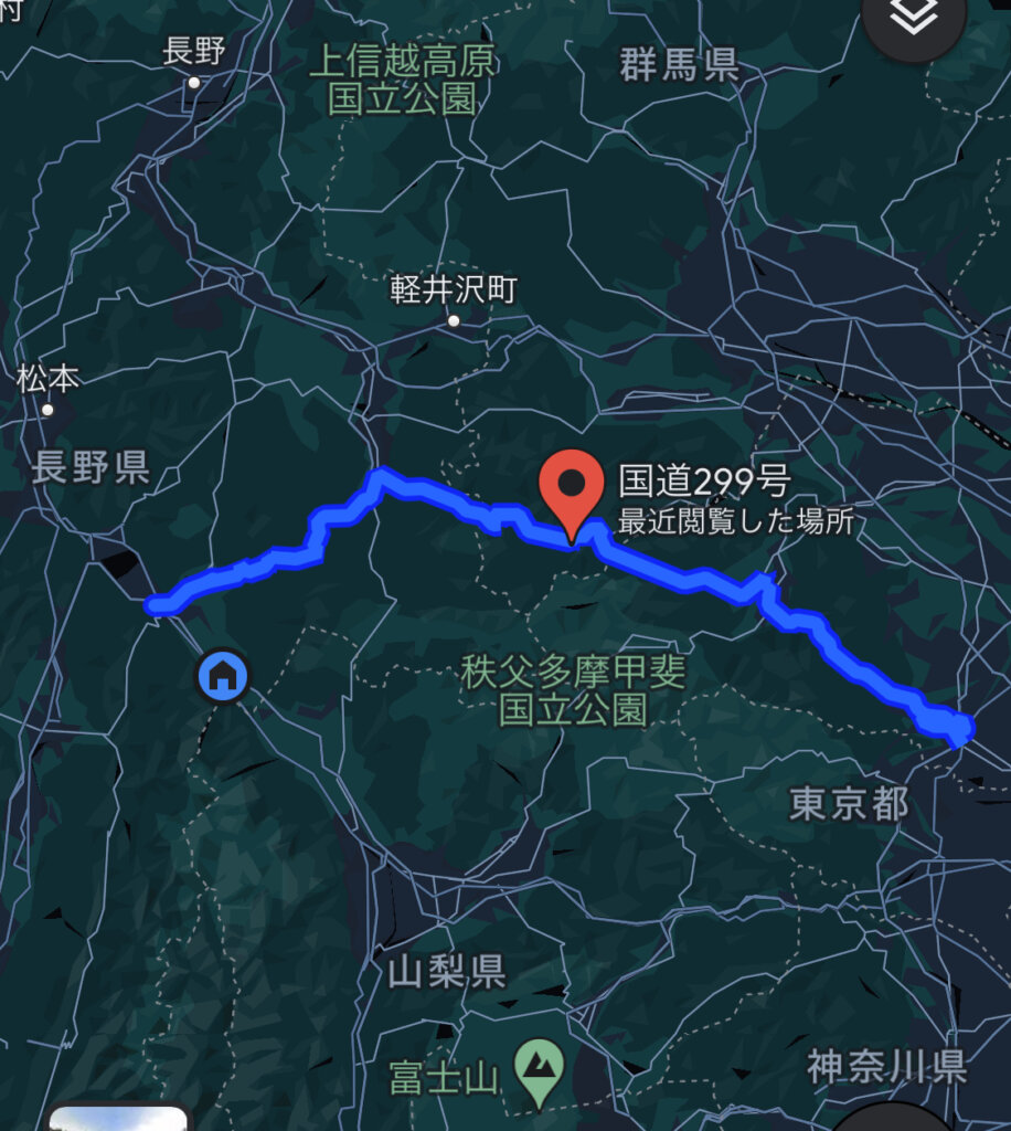 1日目の距離がテキトーなのは、この記事執筆中の2024年3月10日時点では、麦草峠が冬季通行止めになっているからだ。google mapsがルートを表示してくれない。後日、修正する。